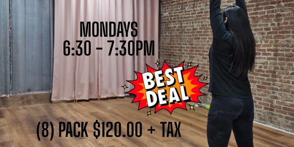 Our best value features (8) 1 hour Pilates classes for $120.00 + TAX. A savings of $80.00.